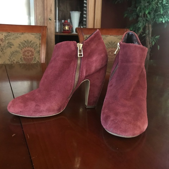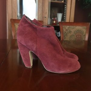 Super cute purple booties/ booted heels by Steve Madden. Leather interior, will keep your little piggies warm.