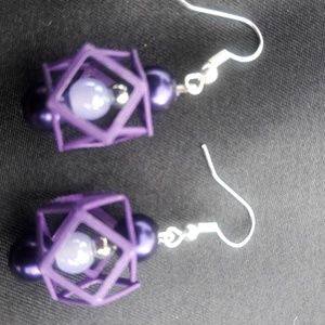 Purple & lavender glass beads enclosed in a purple metal cage. So different they're hard to describe! Fish hook