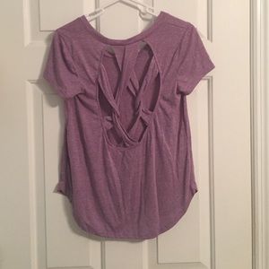Polyester and rayon purple cutout shirt. Super cute for casual occasions. Only worn once.