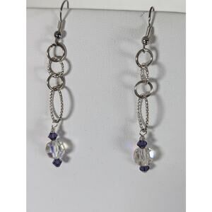 Purple dyed paua shell,Vtge crystal Aurora beads 25-30.5" E 2.50"earrings 2.50"