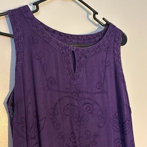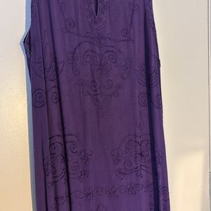 This purple/plum sleeveless maxi dress is embroidered in same color. No tags but fits a 12/14. Flattering on curvy girls too! Measurements upon request! TY