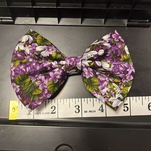 4” x 5” on alligator clip for versatility as a hairbow or as a bow tie