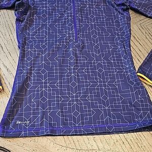 Nike dri fit pullover half zip size S purple geo long sleeve top with thumb holes beautiful and great condition