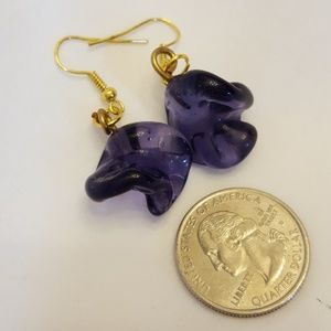 Handmade purple glass drop earrings. Never worn. Please see last photo for sizing reference. Let's negotiate through the offer button or add to a bundle by itself or with multiple items (to save money on shipping) and I will make you an offer. E18