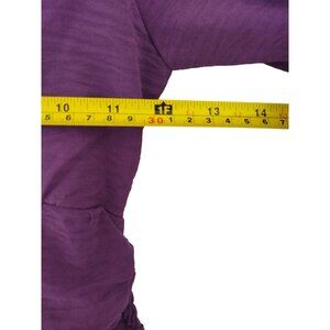 Purple long sleeve dress with bow at back and ruffle at hem, polyester, size M.