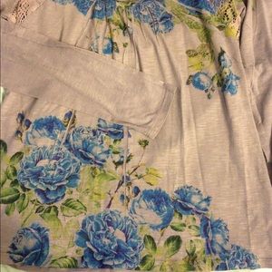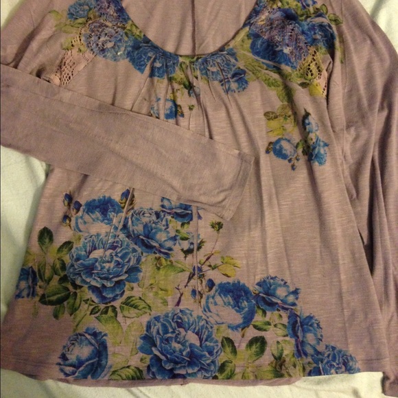Degree long sleeve shirt. It's a light purple color with blue flowers on it
