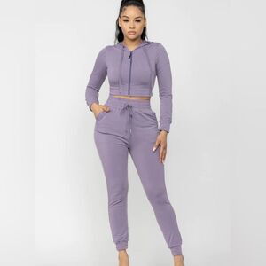 Purple low key crop hoodie jogger workout lounge set size large NWT