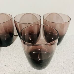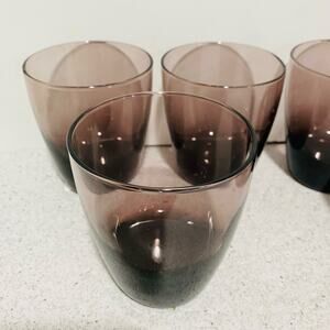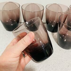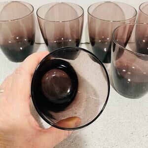 Vintage purple old fashioned glasses done in a mod 1970’s shape - darker amethyst color at the bottom with a color fade going up the glass. These might be a Libbey Glass pattern but I cannot confirm that. Wonderful retro barware perfect for your cocktail table - this is a set of 6 matching glasses in very nice quality heavy glass.