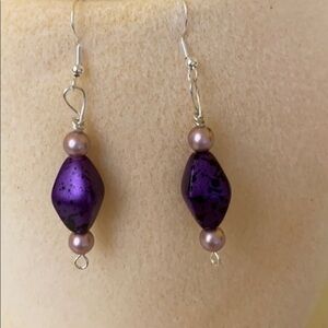 Purple , pink and .925 silver handmade drop pierced earrings