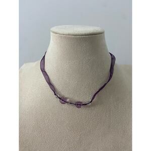 Stylish dainty purple choker necklace with beads in fair condition flaws like holes are pictured great for holidays going out parties gifting work vacation school art deco boho retro twee casual preppy glam grunge coastal grandmother cottage rave whimsygoth