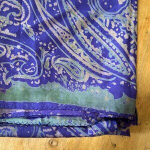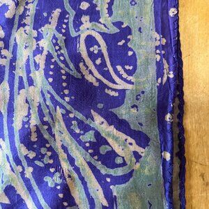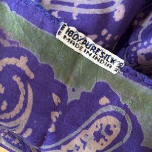 Elevate your style with this exquisite purple and sage green silk scarf, handcrafted in India. Its luxurious fabric and stunning design make it a versatile accessory for any wardrobe.