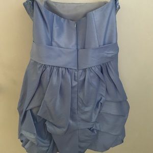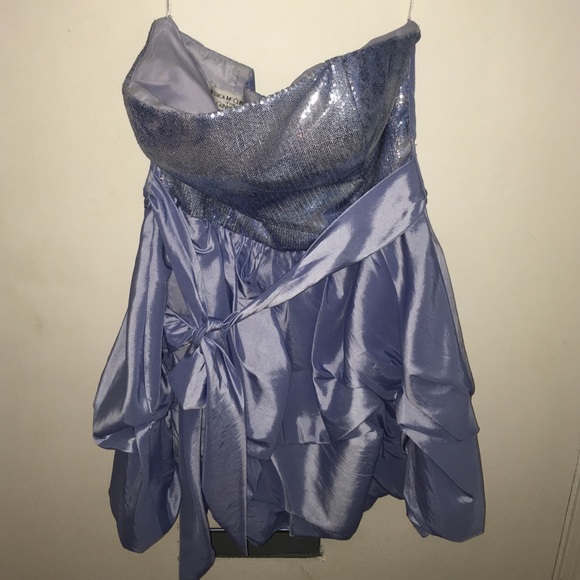 This was worn one for a dance in high school✨ Great condition✨ Has built in cups for more support and zipper in back✨ gorgeous periwinkle color