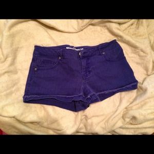 Purple shorts. A little cheeky depending on your butt. 98% cotton. 2% spandex. Worn but in great condition