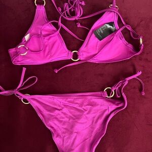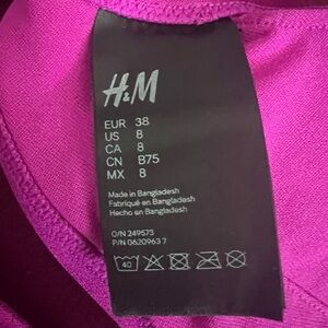 Worn in good condition. Bottoms have a little wear from sitting on cool decking. H&M brand size 8. Bikini is purple and top has removable pads.
