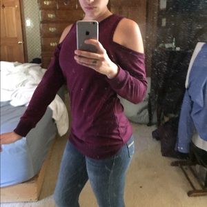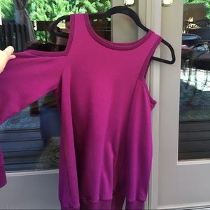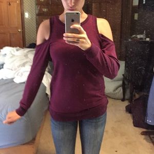 Edgy purple sweater with shoulders cut out. Perfect fall color. Worn once. In perfect condition. 95% polyester, 5% spandex.