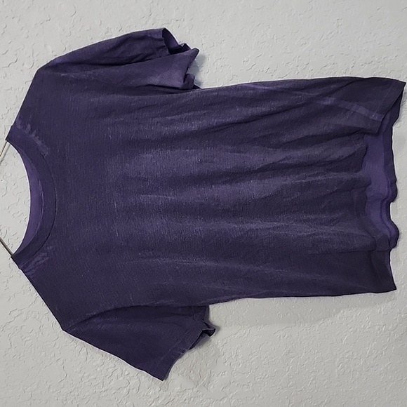 purple tee with thin black stripes piling present mens size small