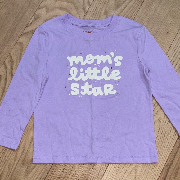 Purple long sleeve T-shirt that says Mom‘s little star with gold stars
