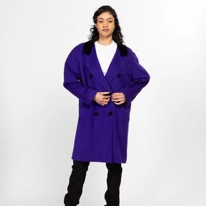 Purple wool blend peacoat with black velvet collar & pockets glam #retrocoat
