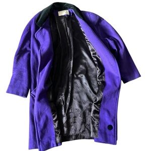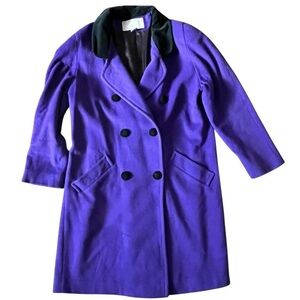 Purple wool blend peacoat with black velvet collar & pockets glam #retro…