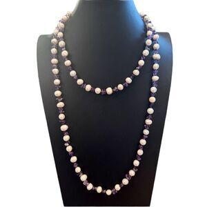 Please see pictures- beautiful baroque freshwater, real pearl and amethyst stone chip strand necklace!