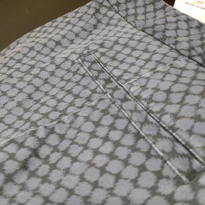 Getting a photo of the color was so difficult! Probably the closest is the photo with the size/brand tags. It is a darker dusty purple with black. The pants are in excellent condition. The seams appear to be purposely faded a bit, but only slightly. Flat front pockets, and flat back pockets (still sewn shut).
