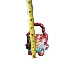 This little cat favors the cheshire cat and accented by dragonflies. Really unique piece. Pre-owned with display wear only. No noticeable flaws upon inspection. Please preview pictures for a visual description of condition and measurements.