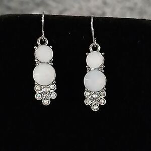 Earrings are white with diamonds. Diamonds reflect shades of pink,, purple,, blue.. Pretty!!