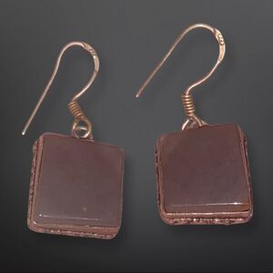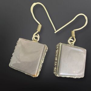 This earrings are stunning set in 925 sterling silver with intricate heart design around the square frame of the purplish gray agate stones. Marked 925 both on the frame and hooks