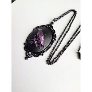Purple Iridescent Raven Crow Gothic Rockabilly Cameo Black Necklace Pendant Victorian Jewelry
