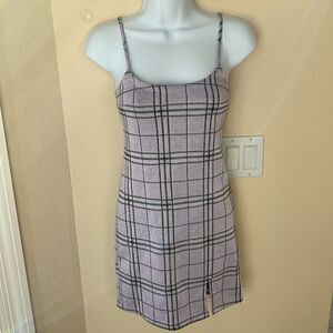 Purple Lavender Plaid Mini Stretchy Adjustable Straps Dress