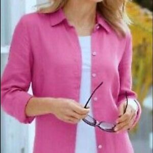 Purple linen lightweight button up tunic. Bottom wrist sleeves. Stock photo included as styling option. Purse and shoes shown available in separate listings.