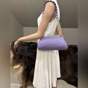 Only one available. Simple style design. Handmade from pebble calfskin leather, exquisite silver metal frame, with push lock closure. Includes 1 leather strap and 2 chains, use in multiple ways, see photos for visual options. It holds a lot, spacious enough for your phones, wallet, cosmetics, bottle of water, compact umbrella & other items that you may need.