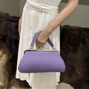Purple Pebble Calfskin Leather Handmade Push Lock Baguette Bag, Multi Use Style