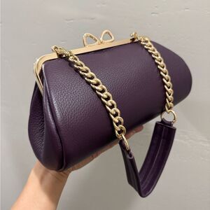 Purple Pebble Leather Handmade Bow Shaped Kisslock Baguette Bag/Crossbody