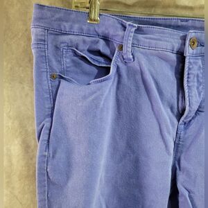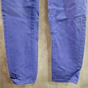 Purple skinny mid-rise stretchy jeans with a zipper and button closure. These jeans are super soft. Perfect for any occasion.