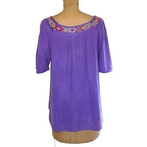 Purple embroidered square neck cheesecloth tunic. In great condition. A little stitching is loose on one shoulder. No size tag but measures like Large-XL