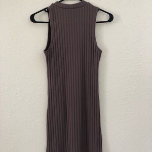 The second photo is the true color of this ribbed bodycon dress. Worn once, in excellent condition. It’s a high neck thicker material dress that hits right at mid thigh.