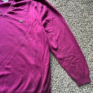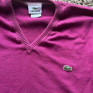 Purple/magenta Lacoste V Neck Sweater, women’s size 8 pullover