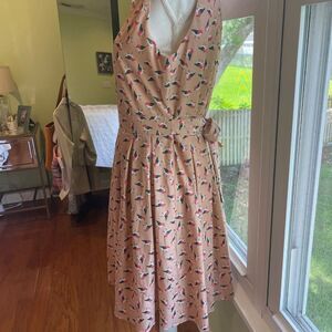 Purplish London Pink Bird Print Dress Whimsical Coquette Trad Wife Party M/L