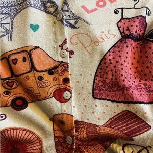 Embrace a chic Parisian vibe with this stylish sweater. Featuring a vibrant orange and cream design, it's perfect for adding a touch of flair to your wardrobe. Size M/L, fits like a medium, cotton polyester blend. Pit to pit: 19”, length: 22”, great condition