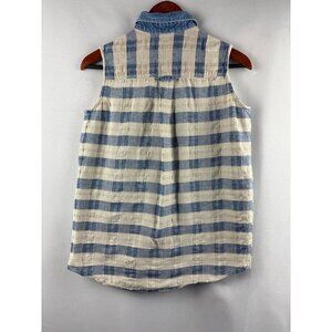 Purrfect By Krazi Kat Womens Medium Sleeveless Blue & White Plaid Button Down To