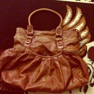 Big good bag, brown two side zippers, front pouch, zipper pocket inside and two little pocket