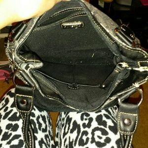 A compartment on the outside of the purse with 2 pockets inside then you have your large zipper compartment with a small pocket the zippers and on the other side there is two other little compartments