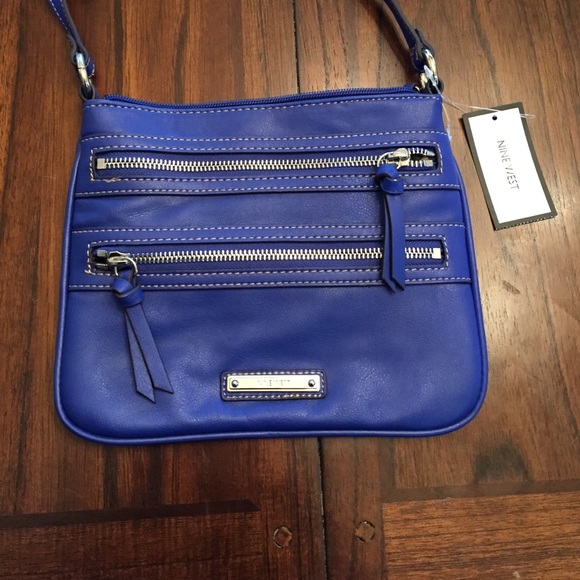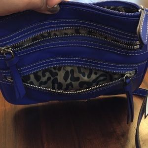 Brand new with tag, Nine West purse. Beautiful blue shade on the outside, leopard print fabric in the inside. Two outside zipper pocket. An additional zipper pocket on the inside. Never been used.