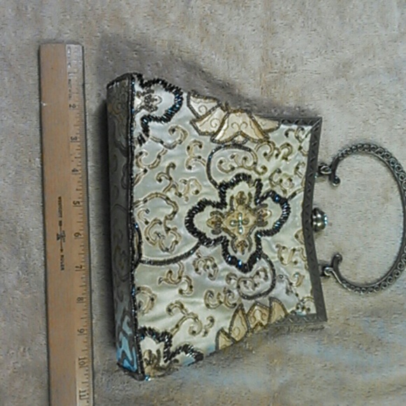 Small, gold background ,beaded. Beautiful no tears or rips inside of purse. Very good condition .