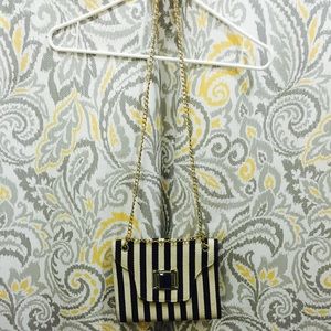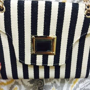 Over the shoulder white and navy blue stripes can wear as a body cross bag.