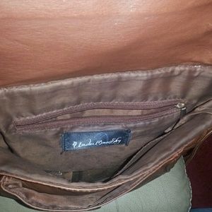 Casual, everyday purse, brown leather material, shoulder strap makes purse go a little below the hip (I'm 5'4"). Barely used.
