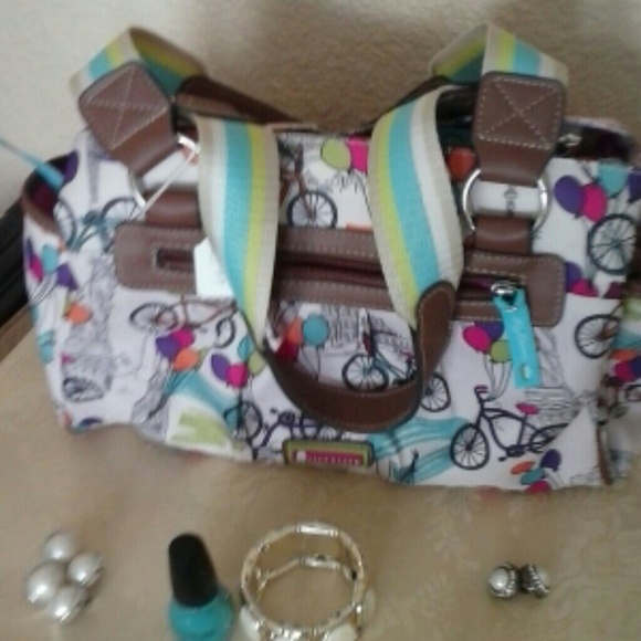 Retro design with vintage look bicycle designs, on canvas background. Very cute NWOT By LILY BLOOM