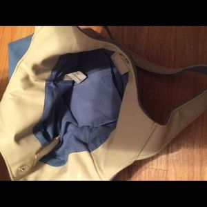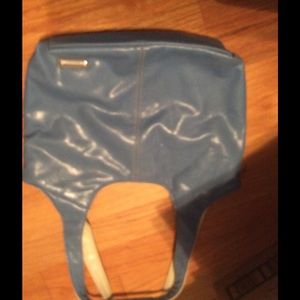 Leather like blue purse very nice it has a key light but the battery is dead. Very clean and it closes with a snap.