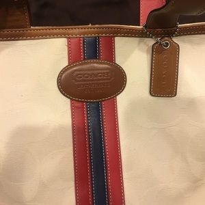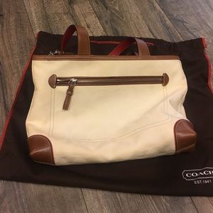 Cream monogram coach purse. Comes with dust cover. Excellent condition. Never been used.